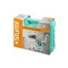 Двухскоростная универсальная модель с бесщеточным двигателем и стальным патроном подходит для выполнения сложных работ, обеспечивает достойную производительность, безопасность и практичность в использовании. Компактный и легкий бесщеточный двигатель имеет наиболее выгодные параметры работы: - увеличенный на 30% КПД; - одинаковую мощность при вращении в обоих направлениях; - точность и простоту регулировки скорости вращения; -экономный расход энергии; -отсутствие падения скорости вращения при увеличении нагрузки; -уверенную переносимость кратковременных перегрузок; -безопасность работы- отсутствие искрения; -простоту обслуживания. Двухскоростной цельнометаллический редуктор отличается долгим сроком службы и оптимальными рабочими режимами для качественного сверления или завинчивания самонарезающих крепежных элементов. Механическая регулировка крутящего момента до 20 ступеней позволяет устанавливать любой крепеж без его повреждения и вдавливания в материал. Повышенный в полтора раза, по сравнению с обычными шуруповертами, крутящий момент в 45 Нм позволяет уверенно работать с любым материалом от древесины до металлопроката. Блокировка шпинделя и широкая муфта быстрозажимного патрона позволяют менять оснастку одной рукой и закреплять её с наилучшей фиксацией. Усиленный цельнометаллический патрон диаметром захвата 13 мм с твердосплавными зажимными кулачками и высоким усилием зажима расширяет набор используемой оснастки и обеспечивает возможность выполнения работ с повышенной нагрузкой. Два Li-Ion аккумулятора на 2.0 Ah с до 3000 зарядок и собственной BMS-системой защиты от перегрузки, перегрева и глубокого разряда обеспечат полную непрерывность в работе. Функция быстрой зарядки зарядного устройства полностью восстановит работоспособность аккумулятора всего за 60 минут или за 35 минут до 80%. Встроенная светодиодная подсветка с применением блока коллиматорных линз эффективно освещает рабочую область направленным симметричным лучом. Эргономичный корпус из ударопрочного нейлона с резиновыми антивибрационными вставками и концентрация основного веса по его оси позволяет работать без напряжения пальцев и снижает усталость. Прочный кейс, универсальная бита, крепление для подвеса инструмента на ремне и магнитный держатель шурупов в комплекте.