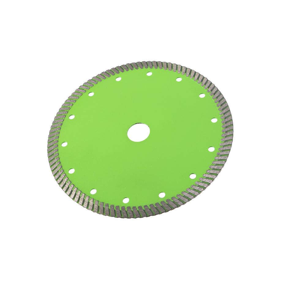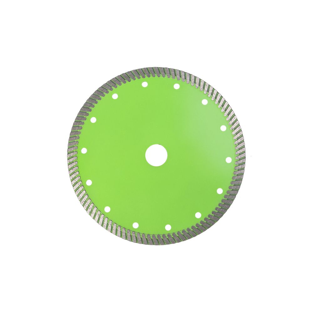 Диск алмазный TURBO с сегментированным алмазным слоем позволяет работать с широким спекторм строительных материалов, натуральными и искуственными камнями и способен прорезать тонкую арматуру в бетоне. Сухой рез. Охлаждение водой увеличивает ресурс диска. Self-sharpening technology -Технология самозаточки позволяет диску сохранять высокую скорость реза даже при длительной работе. Тело диска из стали марки 65Mn и метод горячей опрессовки при производстве алмазных дисков увеличивает его износостойкость и срок эксплуатации. Правильно подобранные компоненты металлической связки обеспечивают постепенный равномерный износ алмазного слоя.