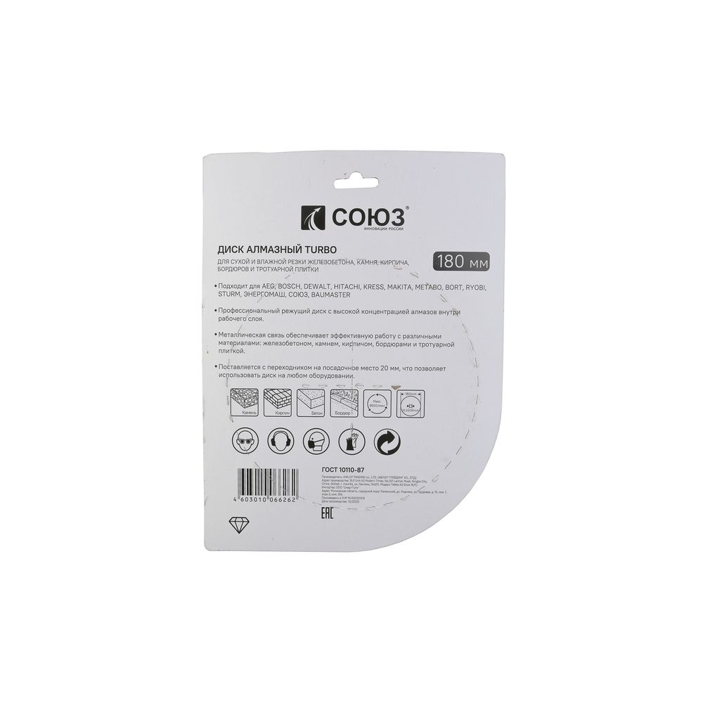 Читать все статьиАлмазный диск TURBO, 180х22,2, Союз