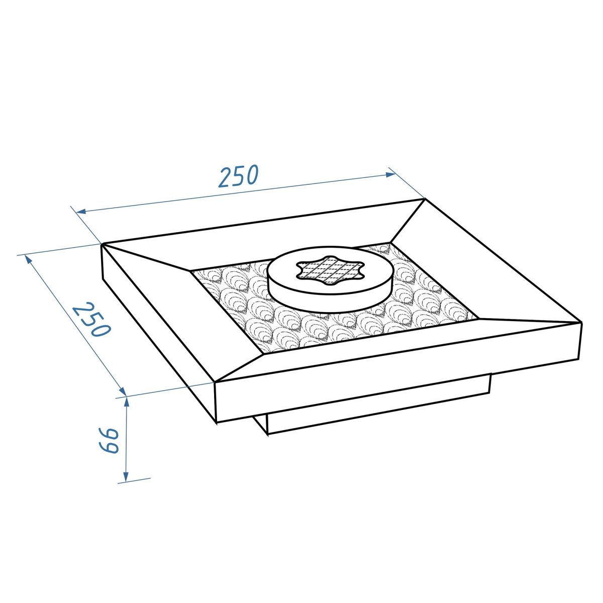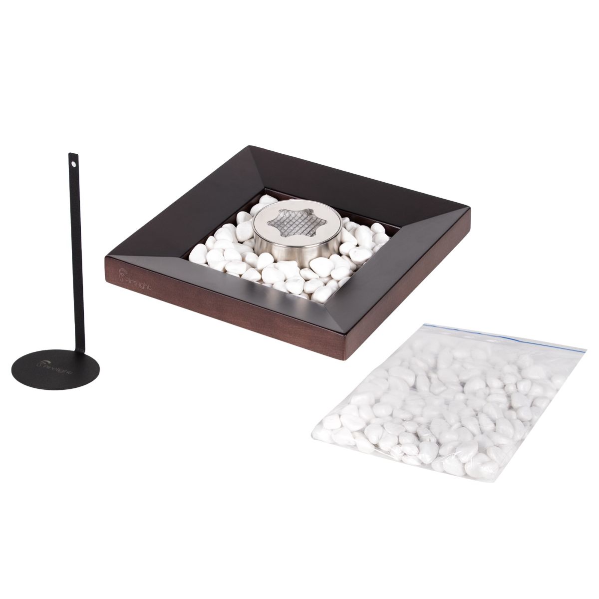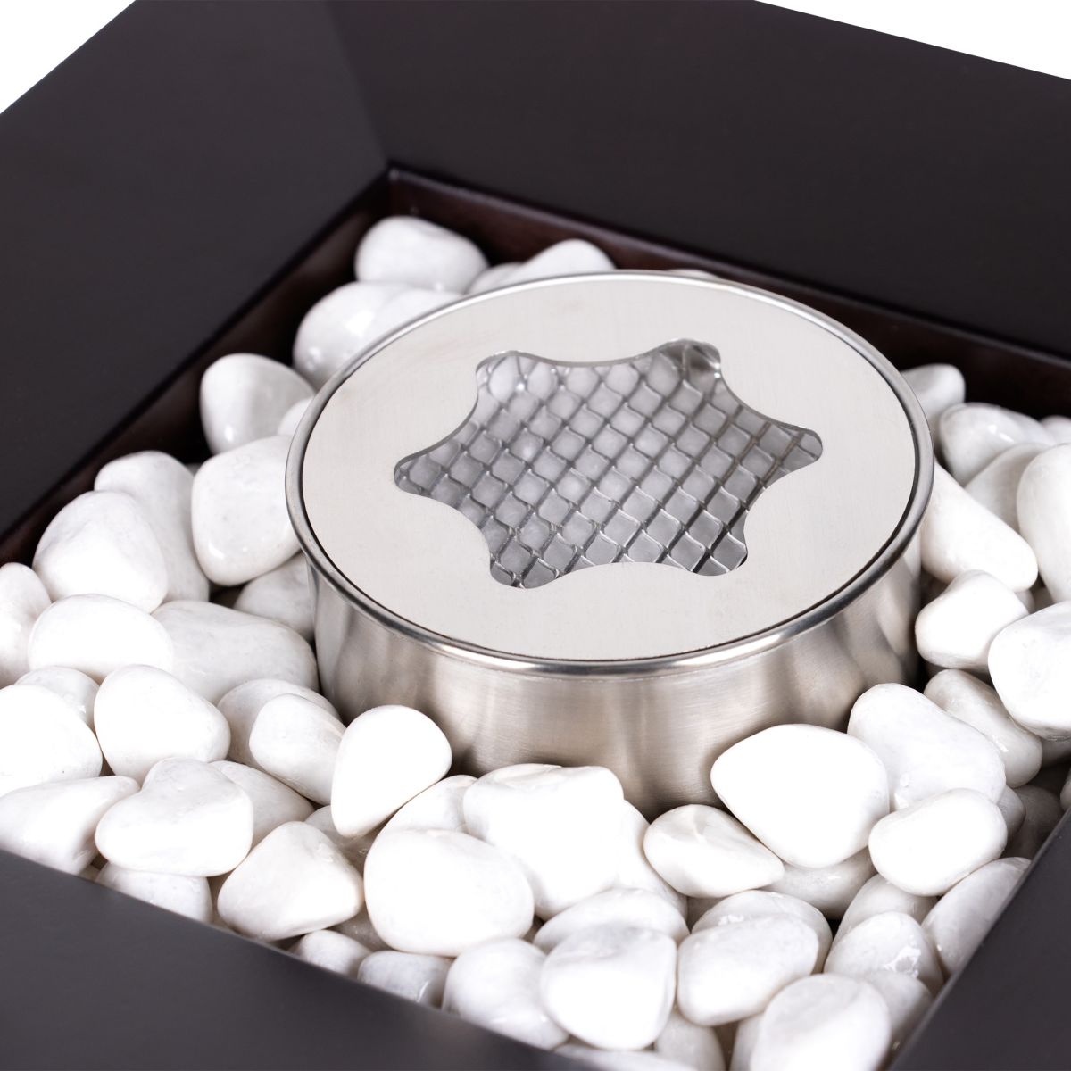Декорированный керамическими камнями настольный биокамин BFP/T-2525 Cup встроен в идеальную геометрию квадрата шириной 25 см.