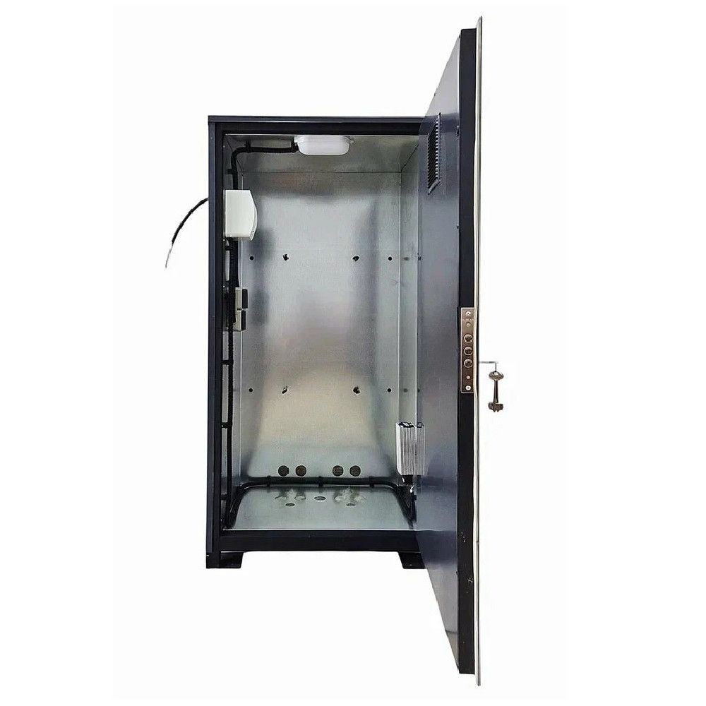 Термобокс оснащен электрическим теном и термостатом мониторинга температуры внутри. Бокс изготовлен из специальных Сендвич панелей с утеплением 40 мм, предназначен для эксплуатации в условиях умеренного климата в соответствии с условиями умеренного и холодного климатов при предельной рабочей температуре от +40 до -40 градусов.