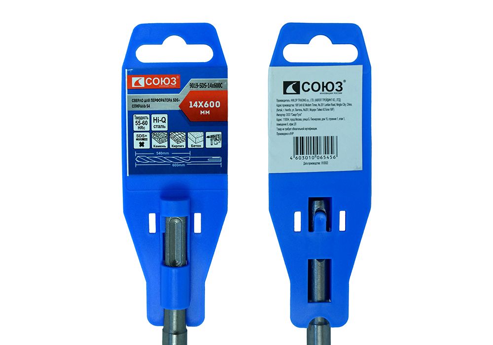 Читать все статьиБур SDS+ 14x600 мм с твердосплавной напайкой, СПИРАЛЬ S4 , Союз