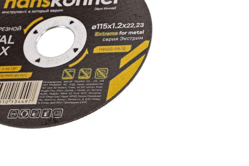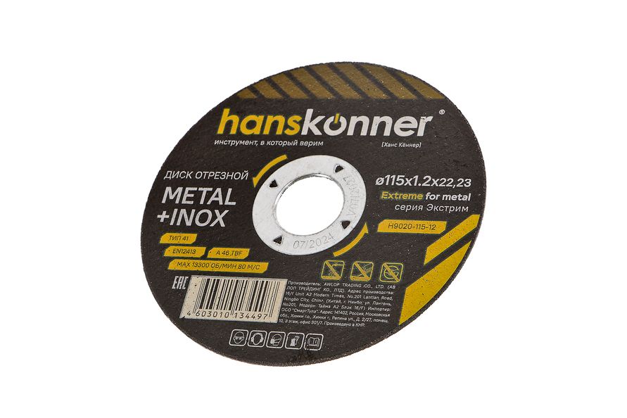 Читать все статьиДиск отрезной по металлу 115х1,2х22,23 Hanskonner