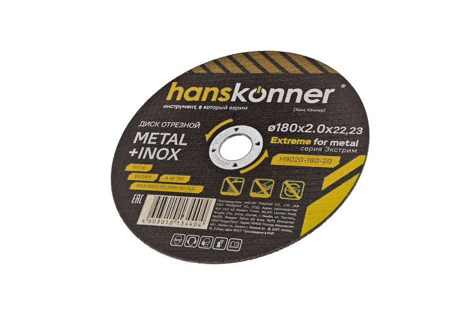 Читать все статьиДиск отрезной по металлу 180х2,0х22,23 Hanskonner