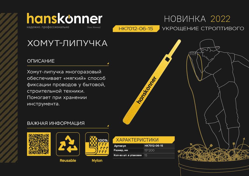 Читать все статьиХомут &quotЛипучка&quot 15х200 мм, 15 шт/уп, Hanskonner