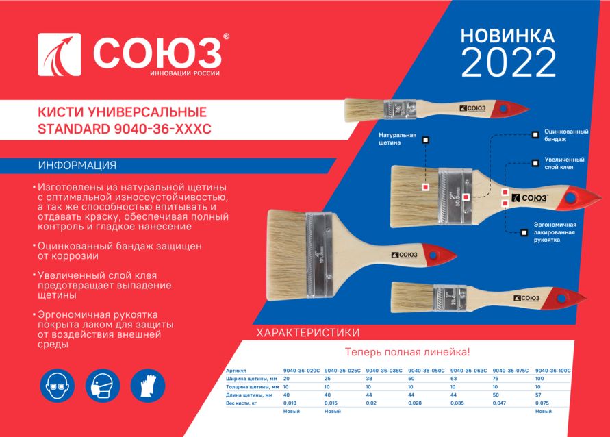 Читать все статьиКисть плоская Standard 2,5&quot (63 мм), натуральная щетина СОЮЗ