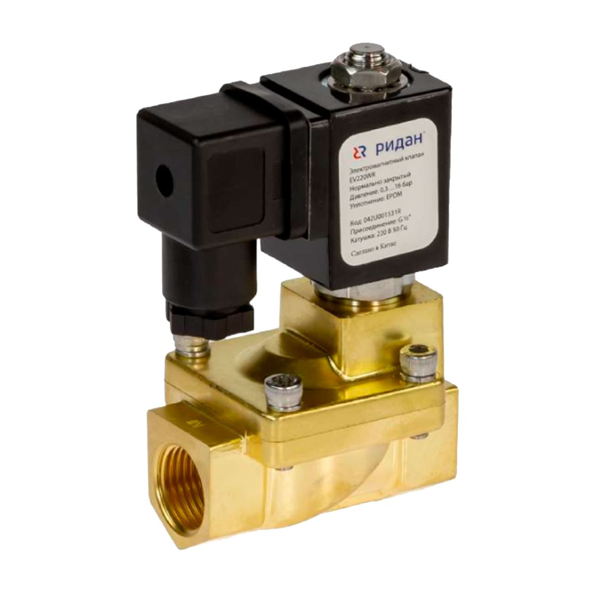Клапан электромагнитный РИДАН EV220WR, G1, NBR, нормально закр., 0,3-16 бар, с катушкой 220В, 50Гц
