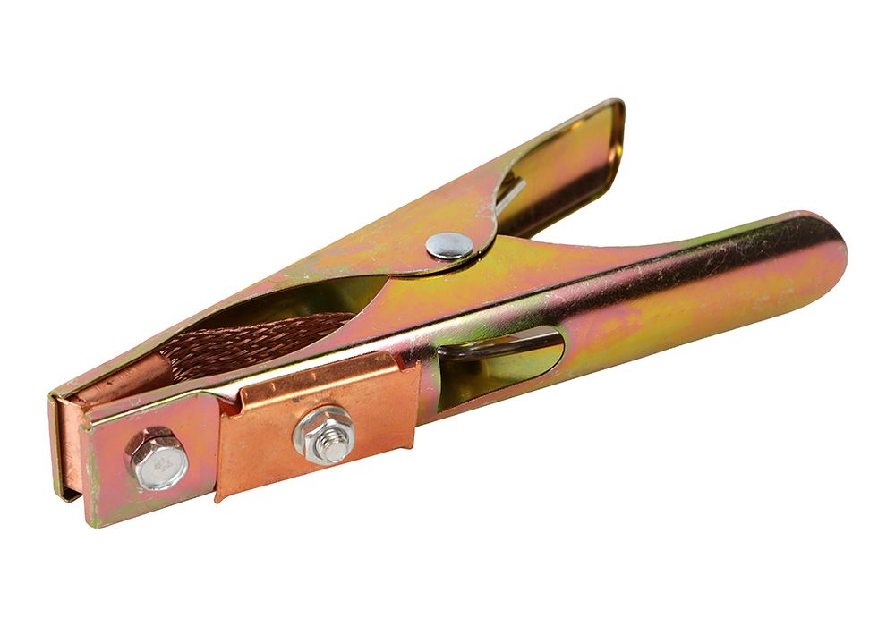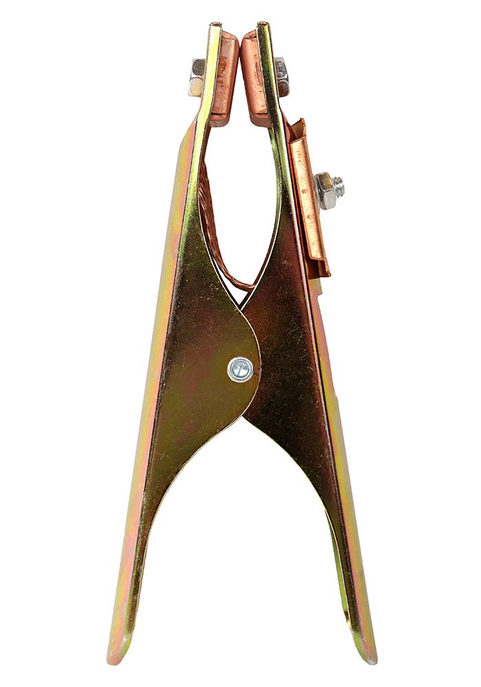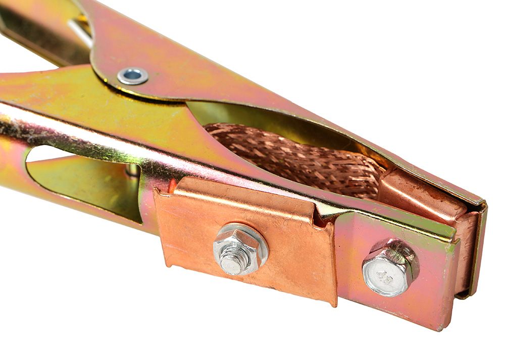 Клемма заземления обеспечивает плотный и надежный контакт в месте соединения во время проведения сварочных работ.