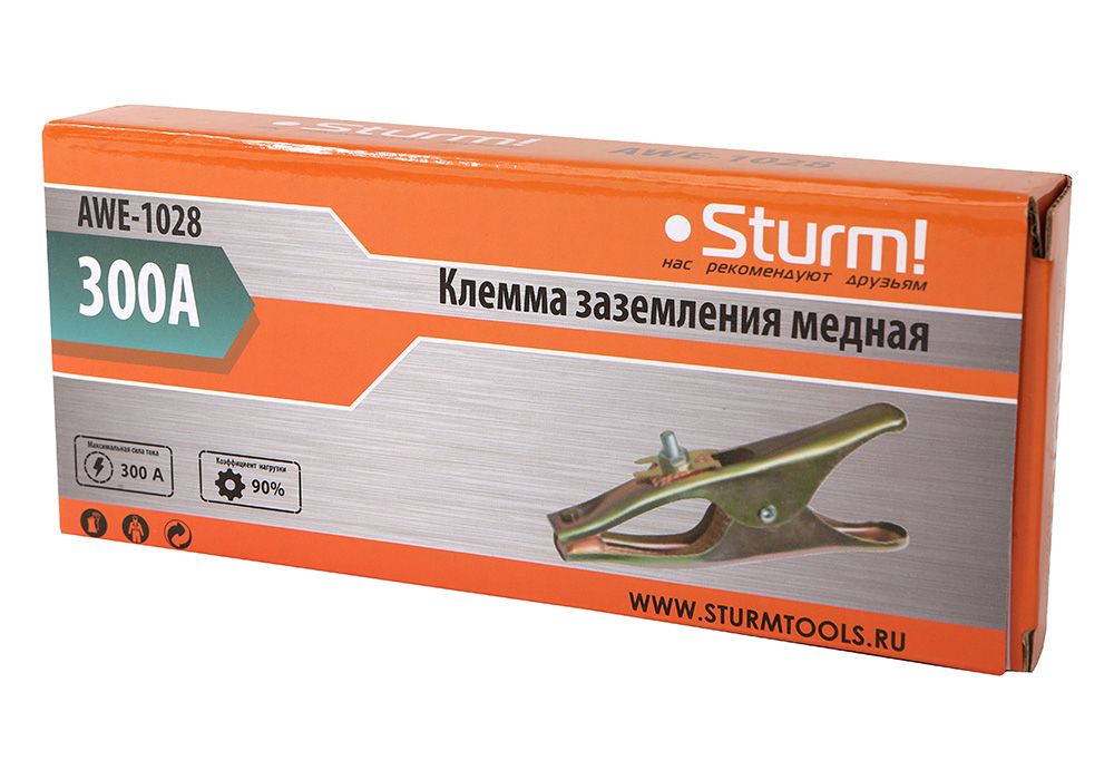 AWE-1028 Клемма заземления (Держатель массы) 300A медь Sturm! предназначена для всех типов сварочных аппаратов при токах до 500 А. Применяется для присоединения (заземления) нулевого провода к свариваемой детали.