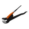 Изготовлен из высококачественной CrV стали, что позволяет выдерживать очень высокие нагрузки без деформации на протяжении длительного времени. Закалённые до 50-55 HRC рабочие кромки сохраняют свою прочность при самых тяжёлых условиях работы. Зубцы прогрессивной формы обеспечивают самоблокирующий захват деталей. S-образная форма губок позволяет фиксировать трубу в трёх точках для наилучшего захвата. Специальное антикоррозийное покрытие обеспечивает надёжную защиту от ржавчины.