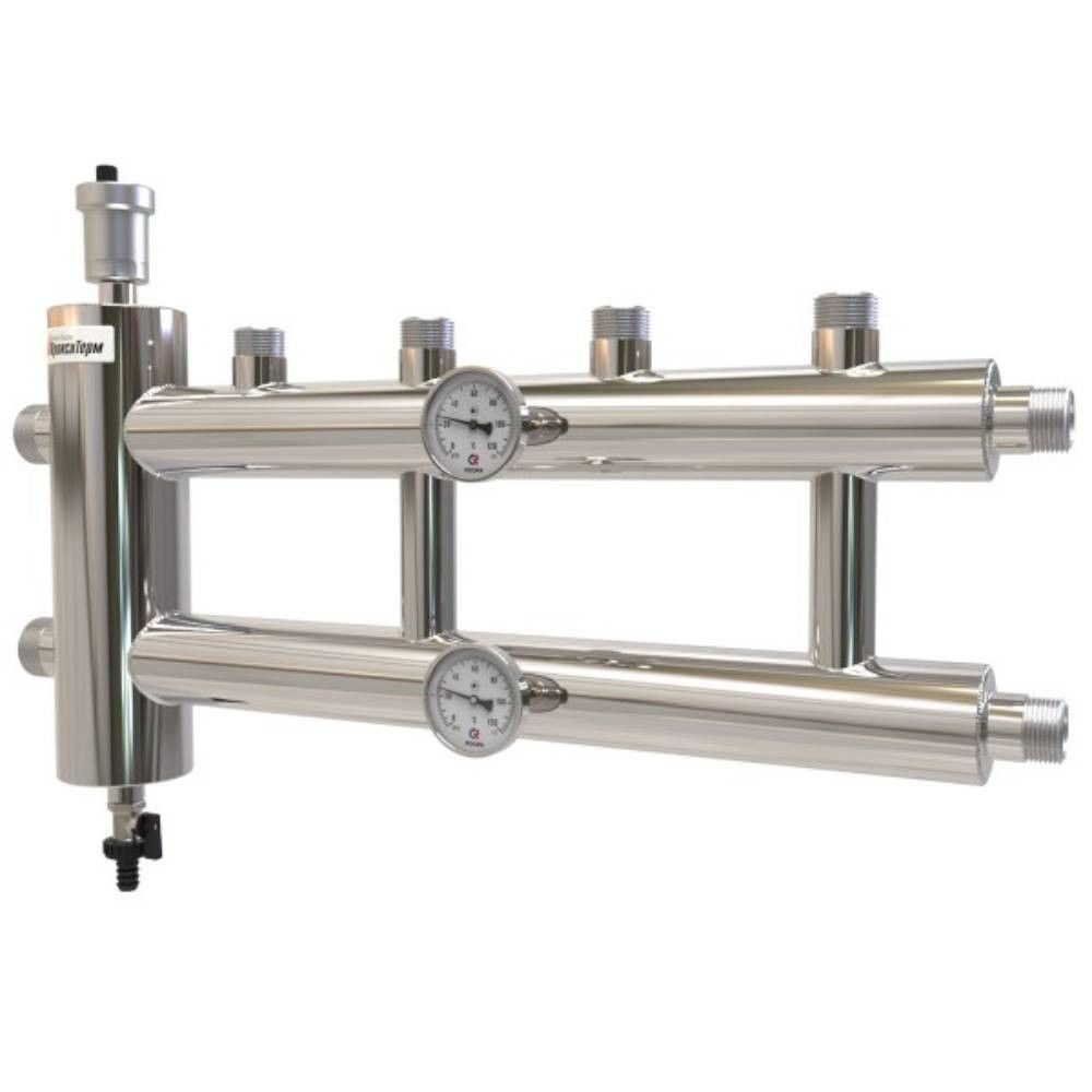 Это интегрированное устройство, предназначенное для распределения и регулирования потока теплоносителя в системах отопления. Устройство объединяет в себе функции распределительного коллектора и гидравлической стрелки, что делает его универсальным решением для современных отопительных систем.