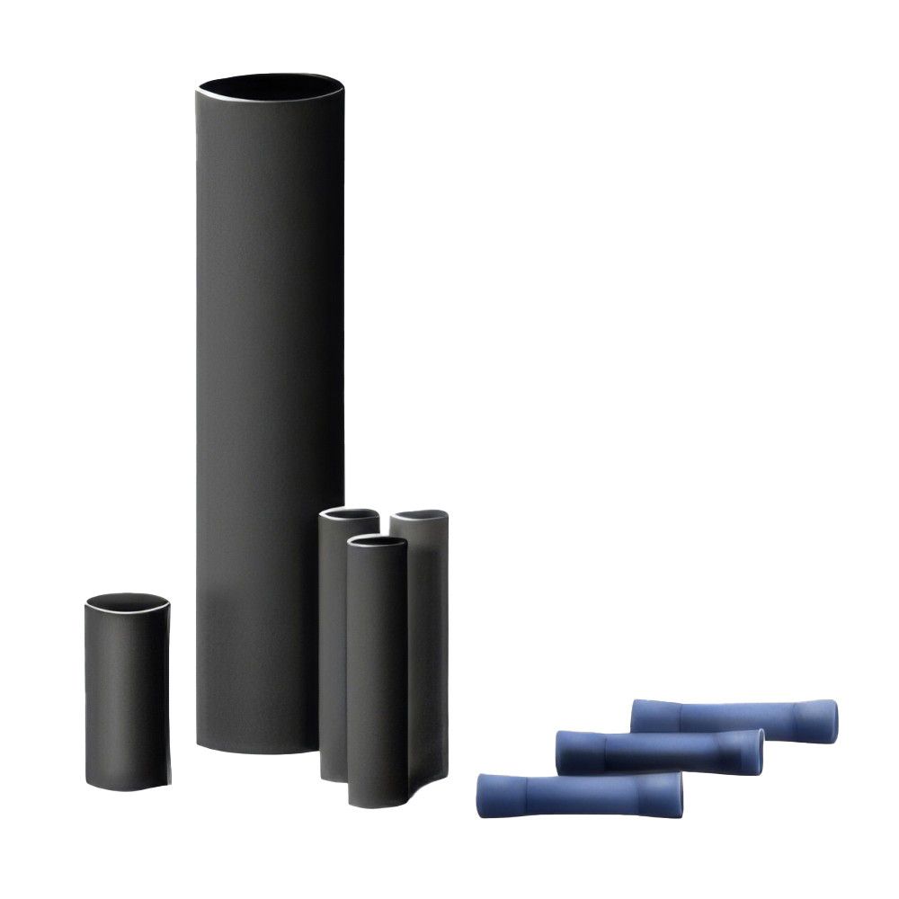 Соединительные муфты предназначены для подключения саморегулирующихся нагревательных кабелей к источнику питания и для соединения их элементов. Все термоусадочные муфты изнутри покрыты клеевым слоем, активирующимся при нагревании. Это обеспечивает плотный контакт трубок с нагревающим кабелем и защищает от протекания. Герметичное соединение снижает риски, связанные с токонесущими проводами, и продлевает срок службы системы обогрева. Внешняя термоусадочная трубка с клеевым слоем 16х200 мм; концевая термоусадочная заглушка (колпачок) 15х55 мм; термоусадочная трубка с клеевым слоем 2х30 мм; термоусадочная трубка с клеевым слоем 12х40 мм; гильзы 2,5 кВт в нейлоновой оболочке — 3 шт.; инструкция по применению.