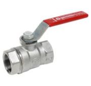 Кран шаровой, резьба наружная/наружная, стандартный проход, хромированный, ручка - рычаг красный.