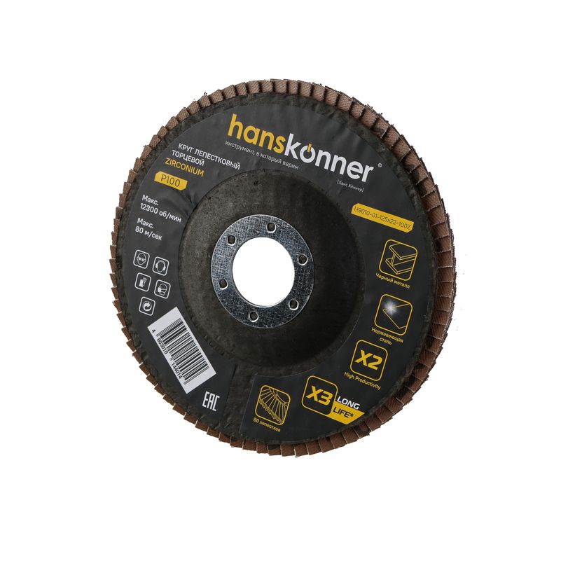 Читать все статьиКруг зачистной лепестковый ЦИРКОНИЕВЫЙ 125х22, зерно 100, Hanskonner