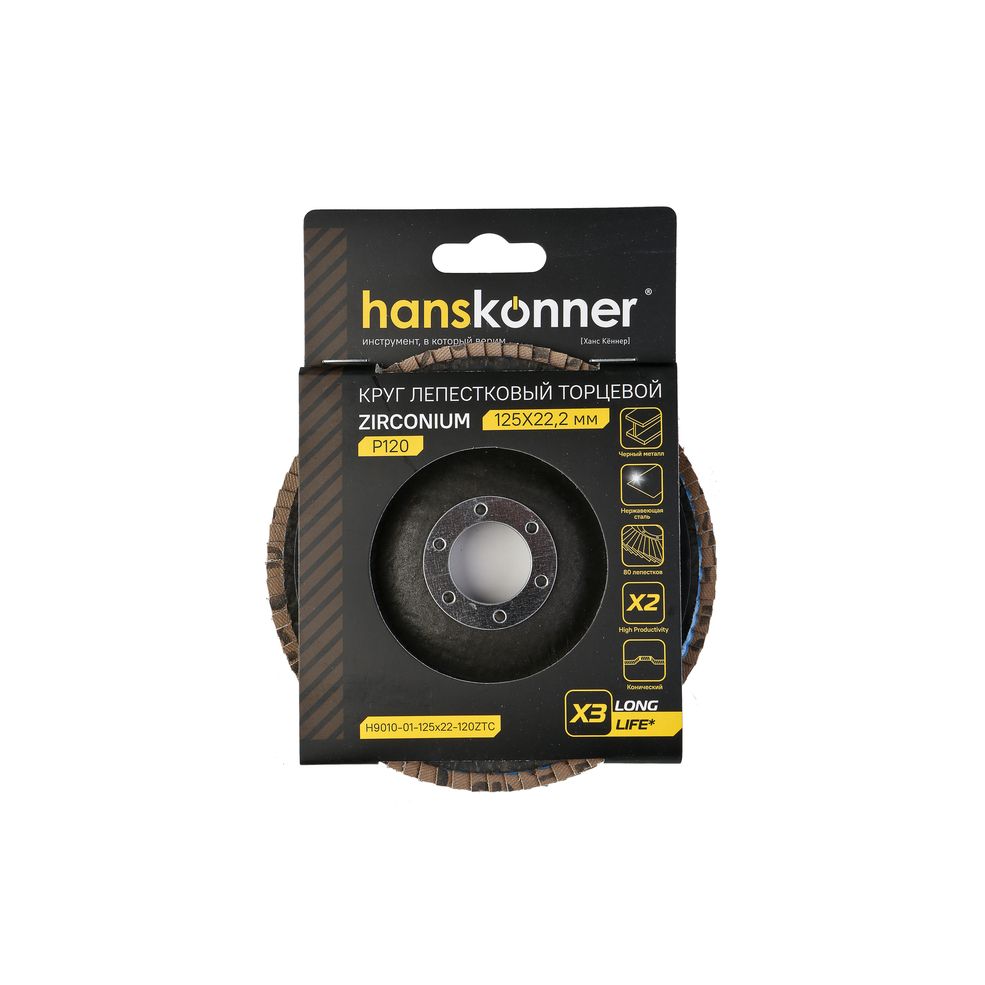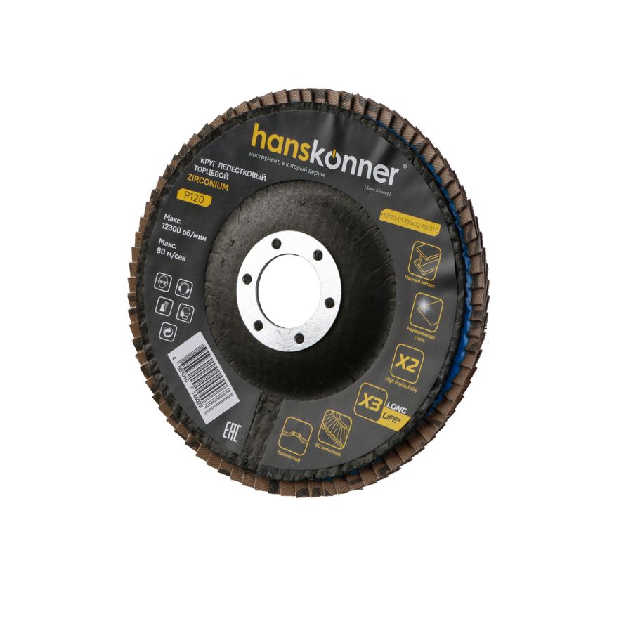 Читать все статьиКруг зачистной лепестковый ЦИРКОНИЕВЫЙ, конический 125х22, зерно 120, Hanskonner