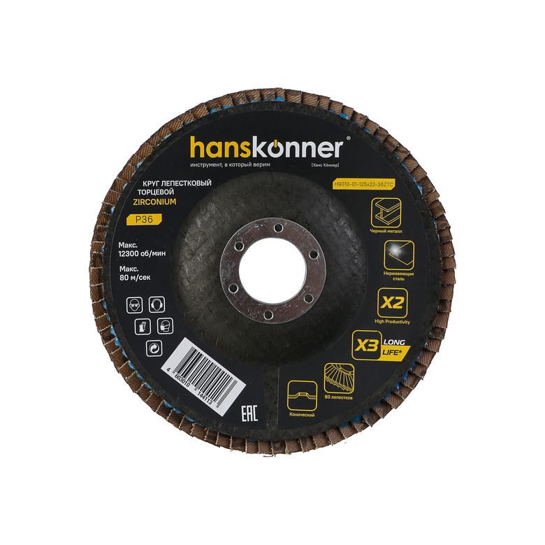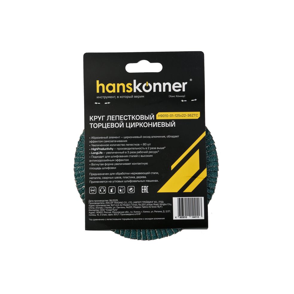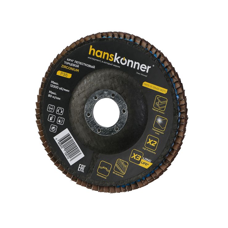 Читать все статьиКруг зачистной лепестковый ЦИРКОНИЕВЫЙ, конический 125х22, зерно 36, Hanskonner