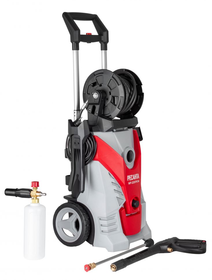 Мойка высокого давления Ресанта предназначена для мойки велосипедов, транспортных средств, авто и мототехники, фасадов зданий, дорожек, садовых принадлежностей и т.д. Мойка МР-220 ПРОФ обладает очень большим ресурсом благодаря надёжному бесщёточному асинхронному электродвигателю и алюминиевой помпе с водяным охлаждением. Данная мойка имеет целый ряд преимуществ, таких как высокая мощность и производительность, удобный барабан для шланга, телескопическая рукоятка, профессиональный пеногенератор, 8-метровый шланг высокого давления. Возможность забора воды даже из ёмкости делает её удобной в любых условиях эксплуатации.