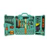Универсальный набор инструментов 1310-01-TS3 удобно использовать как ремонтных работ дома или в мастерской, так и при самостоятельном обслуживании и ремонте транспортных средств. Комплектация: 10 х Головки торцевые 1/4&quot: 4, 4,5, 5, 6, 7, 8, 9, 10, 11, 12 мм; 8 х Головки торцевые 3/8&quot: 9, 10, 11, 12, 13, 14, 15, 17 мм; 1 х Головка торцевая свечная 5/8" 1 х Рукоятка трещоточная 3/8" 1 х Адаптер для торцевых головок 1/4”; 1 х Ключ разводной 200 мм; 1 х Длинногубцы 150 мм; 1 х Плоскогубцы комбинированные 150 мм; 1 х Молоток слесарный 300 г; 1 х Нож канцелярский; 1 х Рулетка измерительная 3 м; 1 х Отвертка риверсивная; 1 х Удлинитель 3/8&quot, 75 мм; 1 х Уровень 225 мм; 1 х Адаптер 1/4” х 3/8”; 29 х Биты: Torx: T10, T15, T20, T25, T30, T40; Philips: PH0, PH1, PH2, PH3; Pozidriv: PZ1, PZ2; Slotted: SL4, SL5, SL6, SL7, 1/8”, 3/16”, 1/4”; Hex: H2, H3, H4, H5, H6, 3/32”, 1/8”, 5/32”, 3/16”, 1/4”; 6 х Отвёртки для точных работ: Philips: PH3, PH3,5; Slotted: SL1, SL1,4, SL2, SL2,4; 16 х Ключи шестигранные: 1,5, 2, 2,5, 3, 4, 5, 5,5, 6 мм, 1/16”, 5/64”, 3/32”, 1/8”, 5/32”, 3/16”, 7/32”, 1/4”; 6 x Ключи комбинированные: 8, 10, 12, 13, 14, 15 мм; 85 х Набор крепежа в контейнере