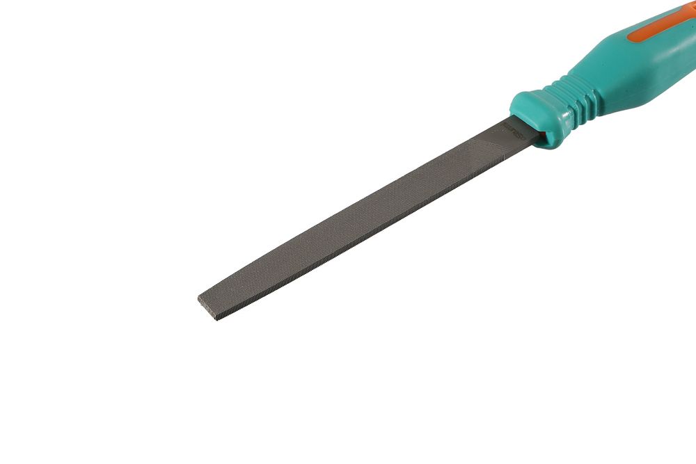 Напильники наиболее распространенными и популярными инструментами для слесарной обработки металлов. Рабочая часть выполнена из качественной инструментальной стали марки Т12 и имеет двойную перекрестную насечку. Рукоятка выполнена из пластика и имеет специальное противоскользящее покрытие инструмент по обработке твердых металлов, таких как сталь и чугун.