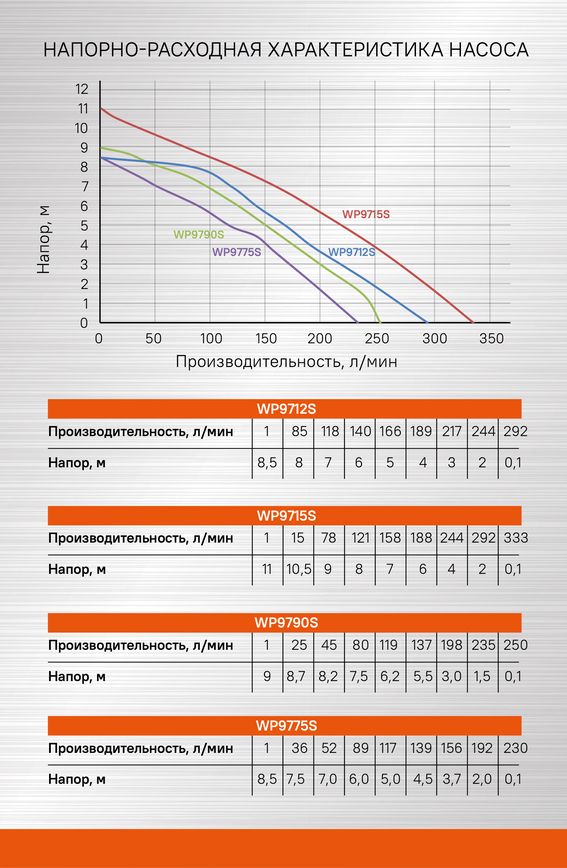 Встроенная термозащита автоматически остановит насос при перегреве и включит его при остывании до рабочей температуры.