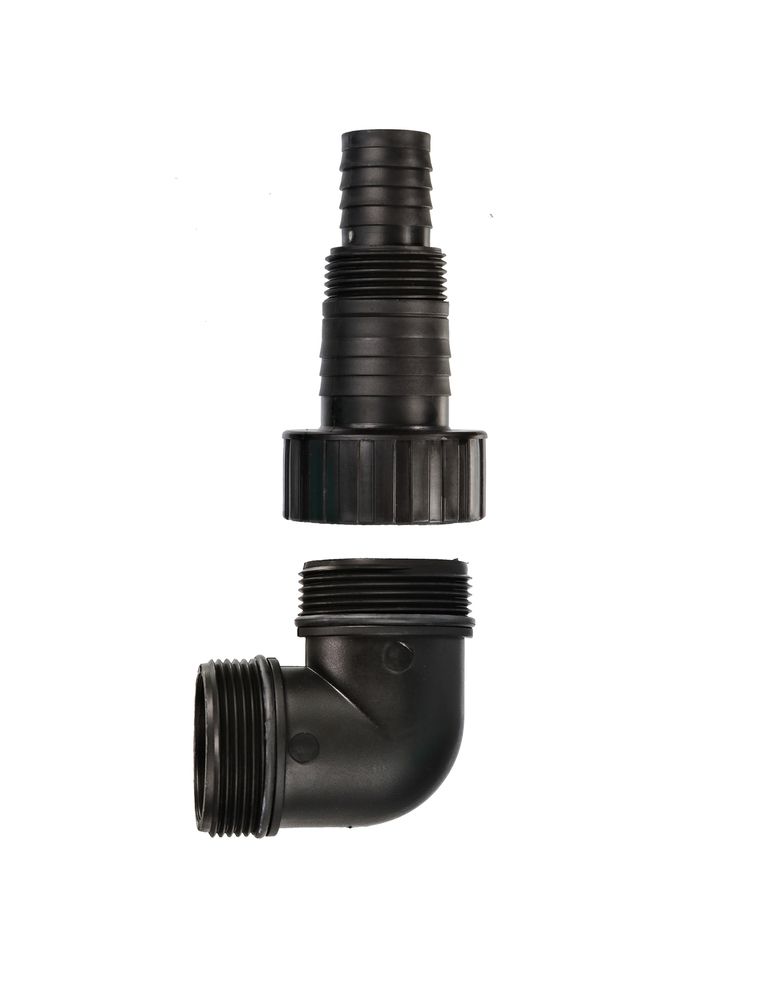 Универсальный фитинг в комплекте позволит использовать с насосом шланги и трубы различных диаметров