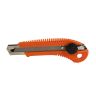 Направляющая поддерживает сохранность корпуса и дает возможность использовать нож для плотных и слоистых материалов. Удобство хвата и защиту от выскальзывания обеспечивает протекция на корпусе ножа. Надёжный винтовой фиксатор позволяет полностью заблокировать движение лезвия.