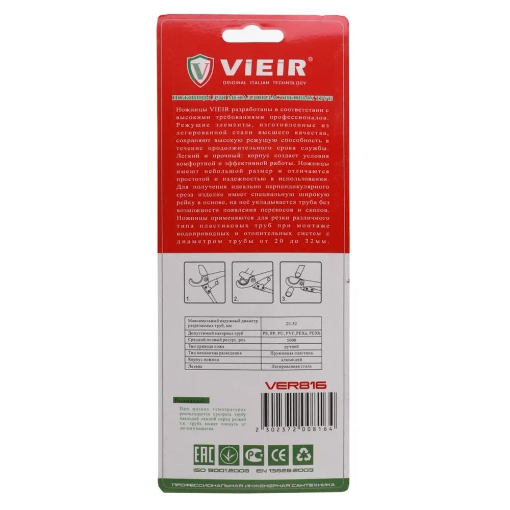 Читать все статьиНожницы VIEIR красные для пластиковых труб (100/20) VER816