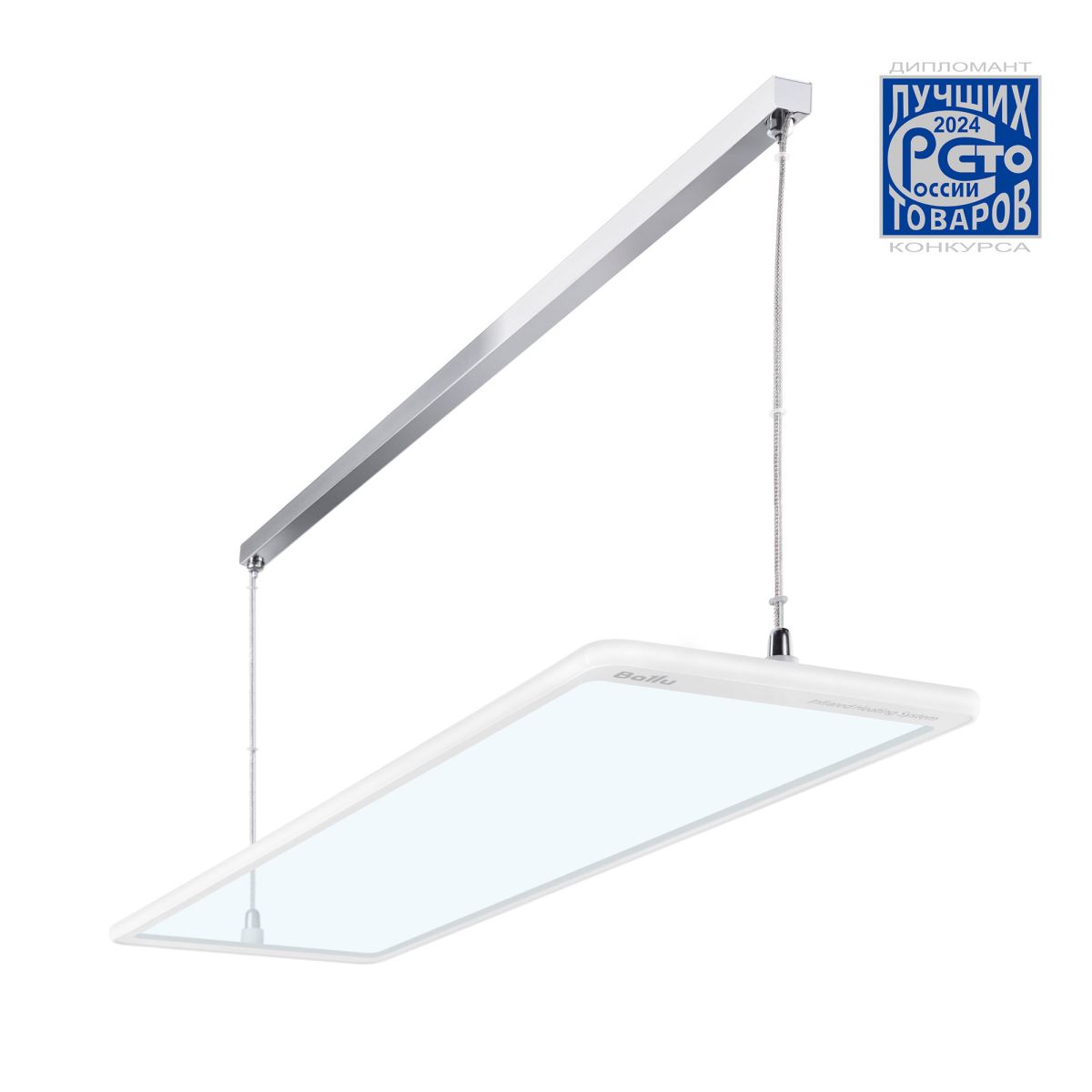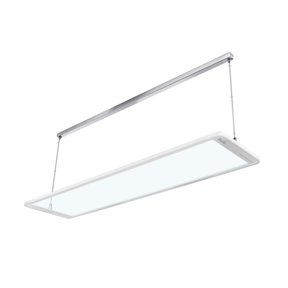 Повышенная степень пылевлагозащиты IP54 допускает применение обогревателей даже во влажных помещениях (ванные комнаты, бани, бассейны). Подвес на тонких незаметных тросах в комплекте.