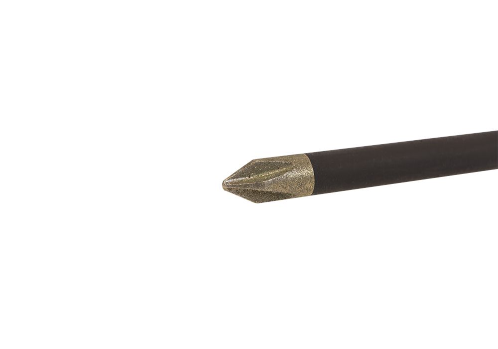 Отвертки имеют эргономичную двухкомпонентную рукоятку с рифлениями, исключающими проскальзывание, мягкая поверхность рукоятки делает работу комфортной. Рабочая часть выполнена из стали марки S2, наконечником с алмазным покрытием,что определяет ее пр