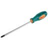 Эргономичная рукоятка с мягким резиновым покрытием, препятствующим проскальзыванию отвертки в руке. Рабочая часть отвертки выполнена из высоколегированной хромованадиевой инструментальной стали и имеет высокую твердость и прочность, что определяет д
