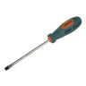Эргономичная рукоятка с мягким резиновым покрытием, препятствующим проскальзыванию отвертки в руке. Рабочая часть отвертки выполнена из высоколегированной хромованадиевой инструментальной стали и имеет высокую твердость и прочность, что определяет д
