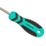 Эргономичная рукоятка с мягким резиновым покрытием, препятствующим проскальзыванию отвертки в руке. Рабочая часть отвертки выполнена из высоколегированной хромованадиевой инструментальной стали и имеет высокую твердость и прочность, что определяет д