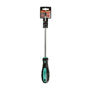 Эргономичная рукоятка с мягким резиновым покрытием, препятствующим проскальзыванию отвертки в руке. Рабочая часть отвертки выполнена из высоколегированной хромованадиевой инструментальной стали и имеет высокую твердость и прочность, что определяет д