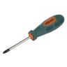 Отвертки имеют эргономичную двухкомпонентную рукоятку с рифлениями, исключающими проскальзывание, мягкая поверхность рукоятки делает работу комфортной. Рабочая часть выполнена из качественной инструментальной стали, что определяет ее прочность и износостойкость. Жало отвертки намагничено для удержания метизов при работе.