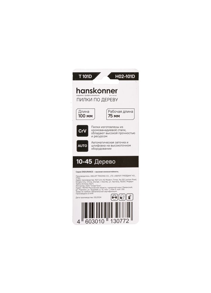 Читать все статьиПилки для лобзика ДЕРЕВО 2шт, T101D (мяг,тверд 10-45мм) Hanskonner