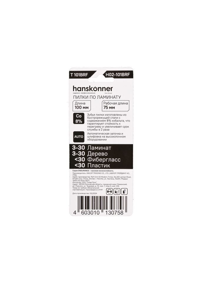 Читать все статьиПилки для лобзика по ламинату 2шт, T101BRF (пласт.,фибер.3-30мм) Hanskonner