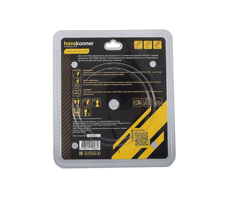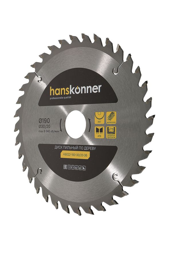 Читать все статьиПильный диск по дереву 190x30мм, 36 зубьев, Hanskonner