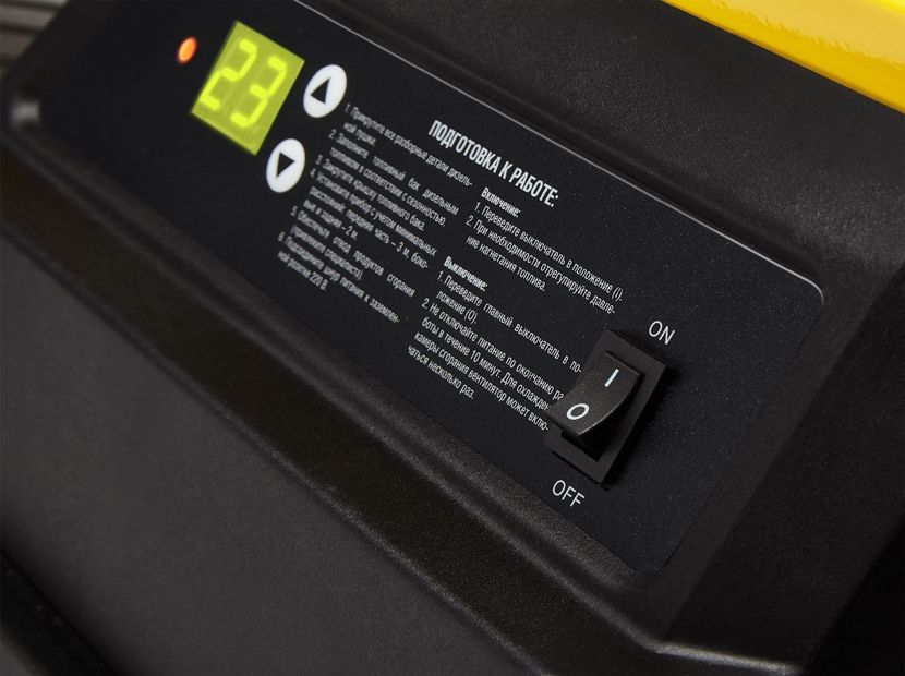 Безопасность использования дизельной тепловой пушки Ballu BHDP-10SH серии SiberHeat обеспечивает электронная плата управления при помощи температурного датчика и фотоэлемента, контролирующего наличие пламени – прекращает работу прибора при возникновении аварийной ситуации.