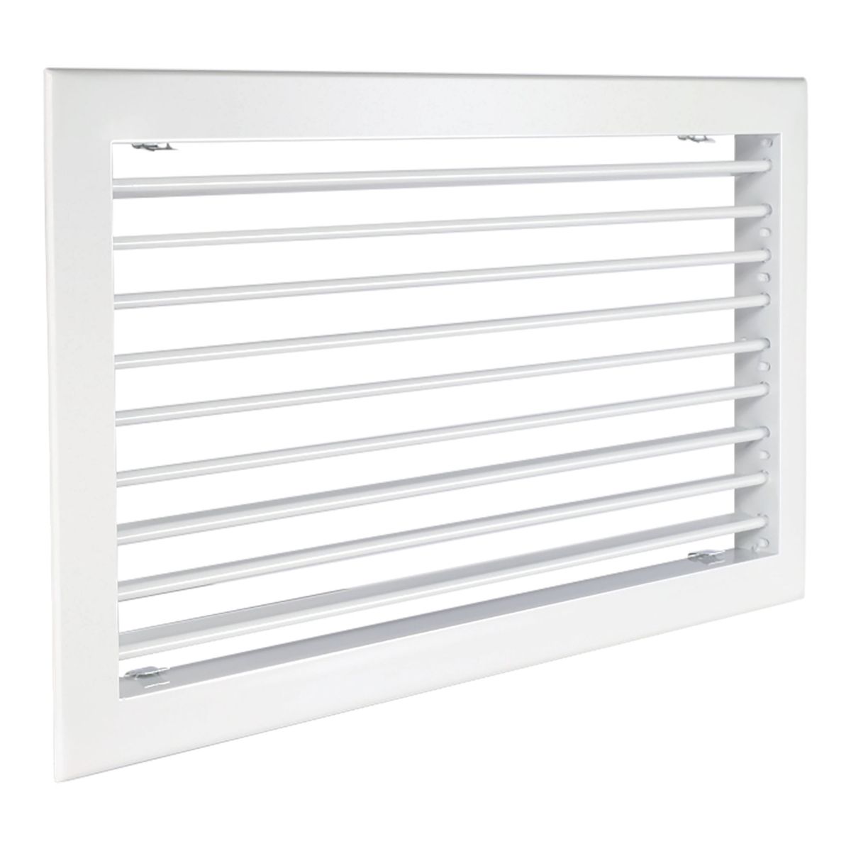 Решетка предназначена для использования в приточно вытяжных системах вентиляции и кондиционирования. Решетка применяется для монтажа в воздуховоды или строительные проемы помещений различных типов, изготовлена из высококачественного алюминиевого профиля и окрашена методом порошкового напыления в белый цвет (RAL 9016). Решетка снабжена индивидуально регулируемыми жалюзи, что позволяет изменять направление воздушной струи. Также может комплектоваться клапаном расхода воздуха D.