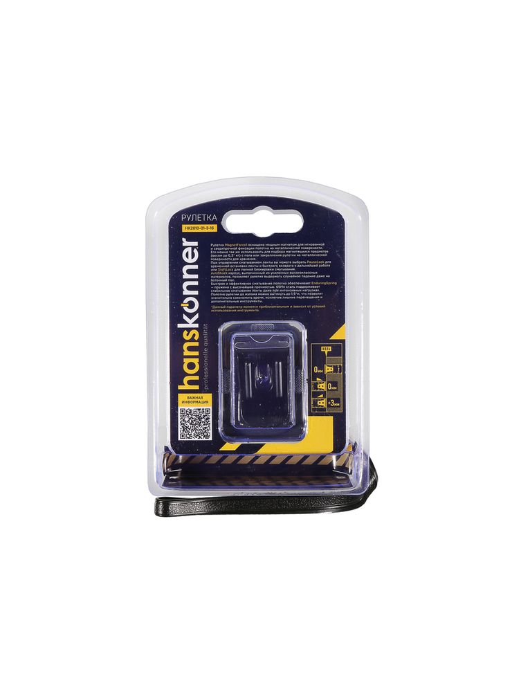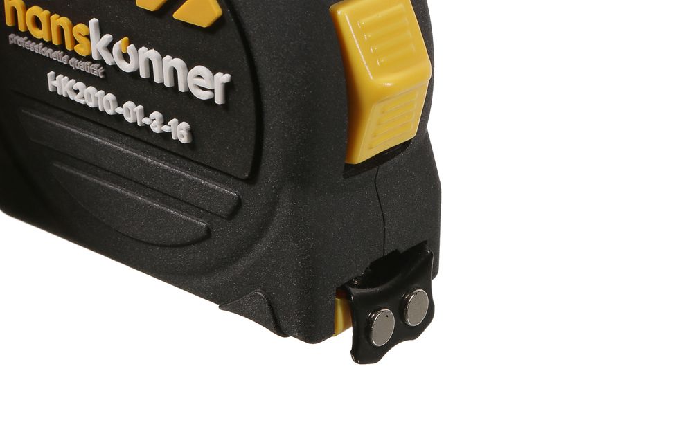 Читать все статьиРулетка 3x16мм, 2 стопа, корпус SoftTouch, супермощный магнит, Hanskonner
