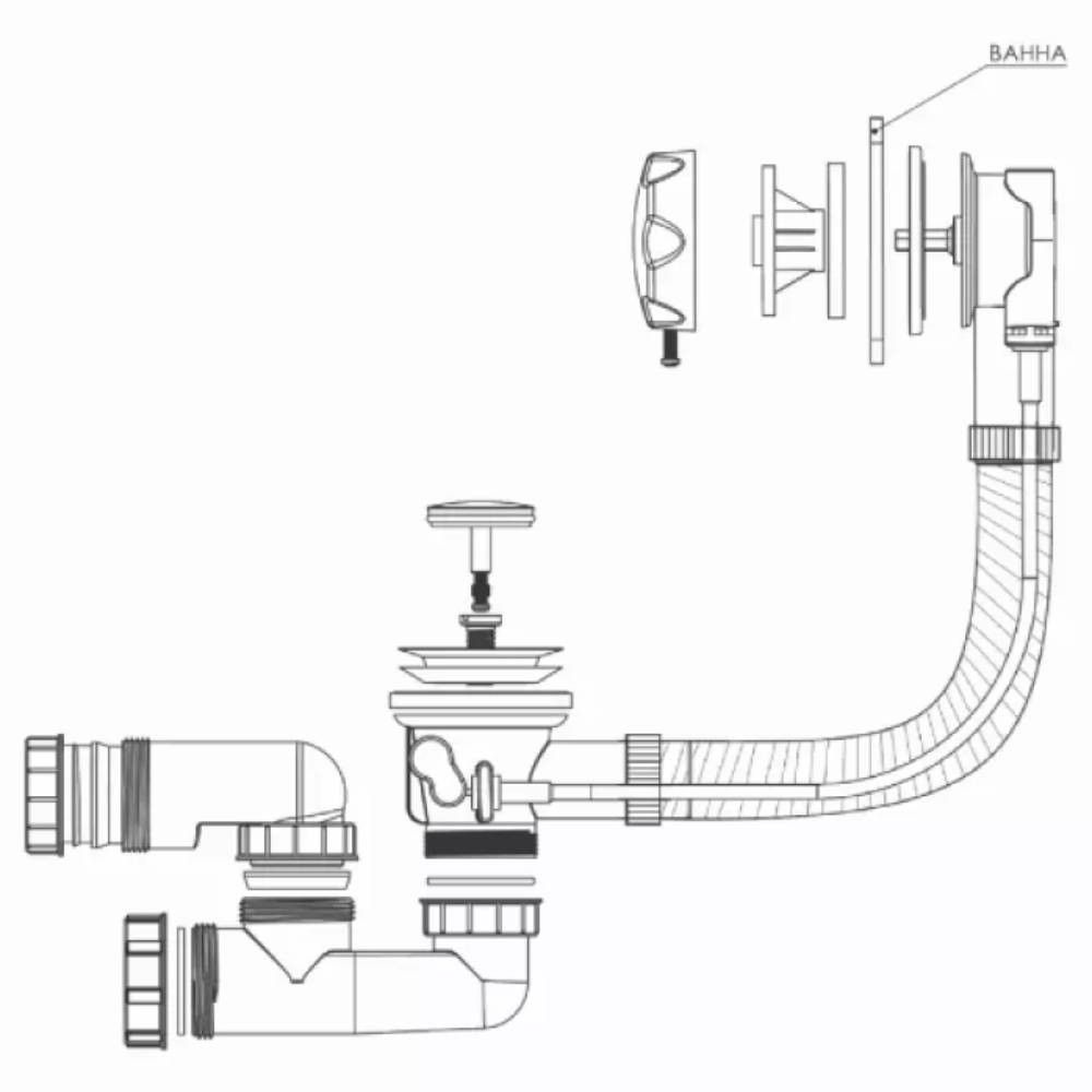 Оснащен механизмом закрытия из полиамида, который обеспечивает комфортную работу сифона. Этот механизм позволяет открывать и закрывать слив ванны с легкостью, обеспечивая плавную и надежную работу сифона.