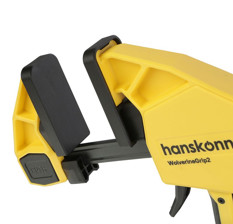 Сила сжатия превышает стандартную в 4 раза и позволяет надёжно закрепить объекты работы. ResilienceTPU — эластичные резиновые накладки на губки струбцины обеспечивают плотную фиксацию детали. Длина 90 мм для увеличенной площади захвата. Стальная направляющая закалённая до 57-60HRC устойчиво держит прижимное усилие. Пластик, комбинированный с нейлоном и стекловолокном, для достижения легкого веса, хорошей ударной вязкости и долговечности. Двухкомпонентная рукоятка SolidGrip покрытая TPR материалом удобна для захвата и обладает повышенной стойкостью к внешнему воздействию. Подвижная подставка на направляющей для устойчивого горизонтального положения.
