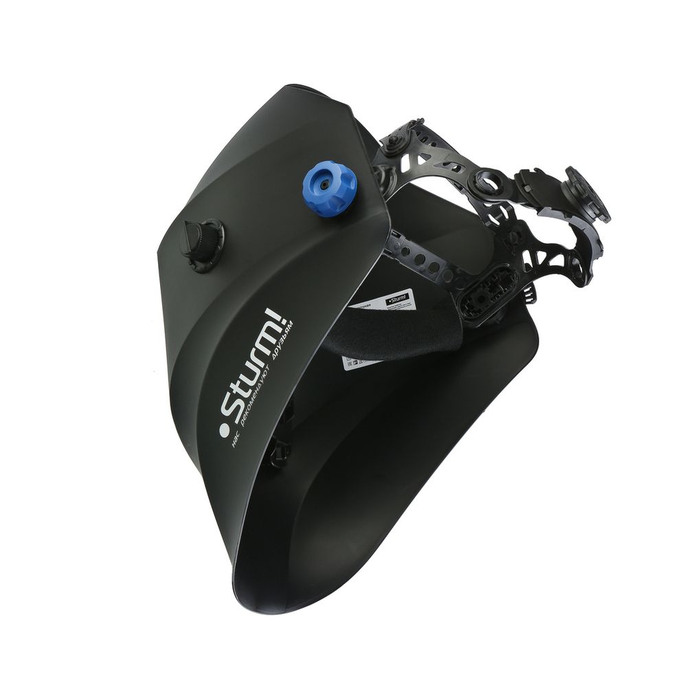Маска сварщика Sturm! WH107R, оснащённая автоматическим светофильтром высокого качества с классом защиты 1/1/1/2, гарантирует максимальную защиту глаз и лица от ультрафиолетового излучения, инфракрасного света и ярких вспышек дуги при сварке в режимах MMA, MIG-MAG , Plasma. Маска со сбалансированным набором опций. Имеется возможность смены элемента питания, режим шлифовки, регулировки затемнения и чувствительности. Возможность установки диоптрических линз. 3-х осевой наголовник с храповым механизмом и 5 регулировками. Сменный гипоалергенный резиновым затылочным обтюратором.