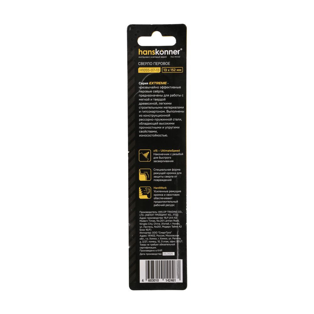 Читать все статьиСверло перовое по дереву 13мм, высококачеств. сталь, шестигр. хвостовик, Hanskonner