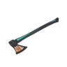 Топор изготовлен из кованой высококачественной стали, что обеспечивает сохранение формы на протяжении всего срока службы. Усиленное лезвие закалено индукционным методом и держит заточку при самых тяжёлых условиях работы. Обрезиненная удлинённая фиберглассовая рукоятка гасит вибрацию от удара, обеспечивает надёжный захват двумя руками, а так же максимально передаёт усилие при работе. Специальное порошковое антикоррозионное покрытие топора увеличивает срок службы инструмента.