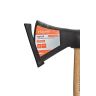 Топор изготовлен из кованой высококачественной стали, что обеспечивает сохранение формы на протяжении всего срока службы. Покрыт специальной порошковой краской для защиты от коррозии. Лезвие закалено индукционным методом и держит заточку при самых тяжёлых условиях работы. Удобная деревянная рукоятка защищена от воздействия окружающей среды.