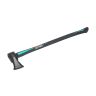 Топор изготовлен из кованой высококачественной стали, что обеспечивает сохранение формы на протяжении всего срока службы. Усиленное лезвие закалено индукционным методом и держит заточку при самых тяжёлых условиях работы. Специальные утолщения по бокам помогают эффективно колоть древесину. Полностью обрезиненная удлинённая фиберглассовая рукоятка гасит вибрацию от удара, обеспечивает надёжный захват по всей длине, а также максимально передаёт усилие при работе. Специальное порошковое антикоррозионное покрытие топора увеличивает срок службы инструмента.