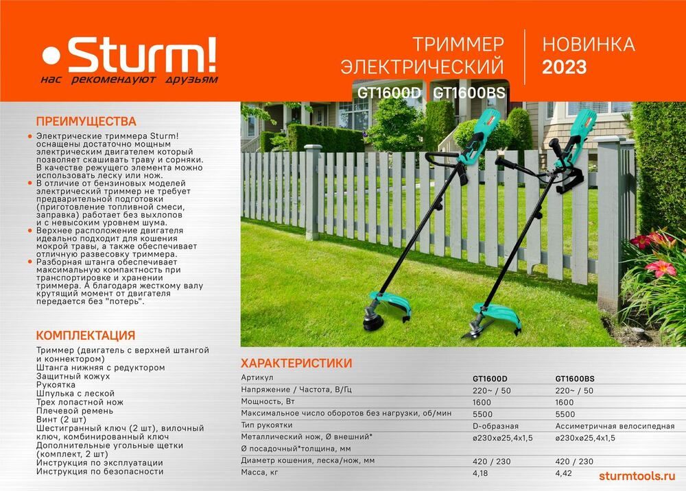 Читать все статьиТриммер электрический Sturm! GT1600D