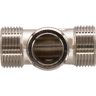 Тройник 3/4" ш/ш/ш CTM с наружной резьбой - трёхсторонний резьбовой фитинг. Предназначается для соединения частей трубопровода. Тройник изготавливается из высококачественной горячепрессованной латуни. Никелированное покрытие тройника даёт дополнительный запас прочности. Никелирование предотвращает появление коррозии, а также защищает от механического износа и вредного воздействия агрессивных жидкостей и воздушно-газовых сред. Резьба тройника нарезается на станке с ЧПУ. Наружная резьба тройника оснащена насечками, обеспечивающими лучшее сцепление с уплотнительным материалом при монтаже.