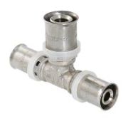 Данный соединительный элемент представляет собой пресс-тройник, предназначенный для современных трубопроводных систем. Конструкция разработана для надежного и быстрого монтажа методом прессования, обеспечивающего долговечное герметичное соединение.